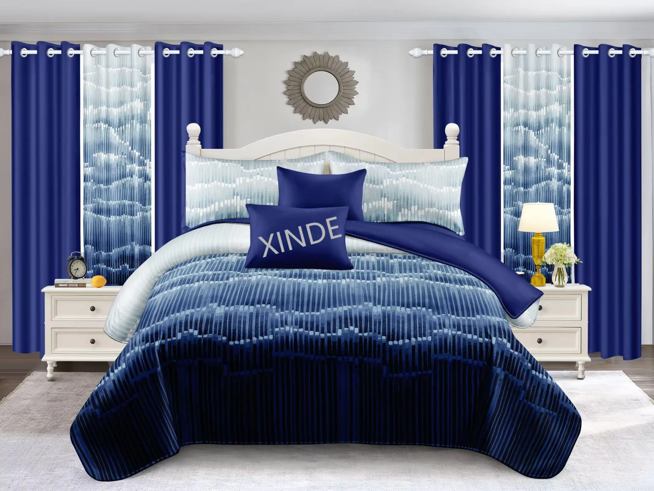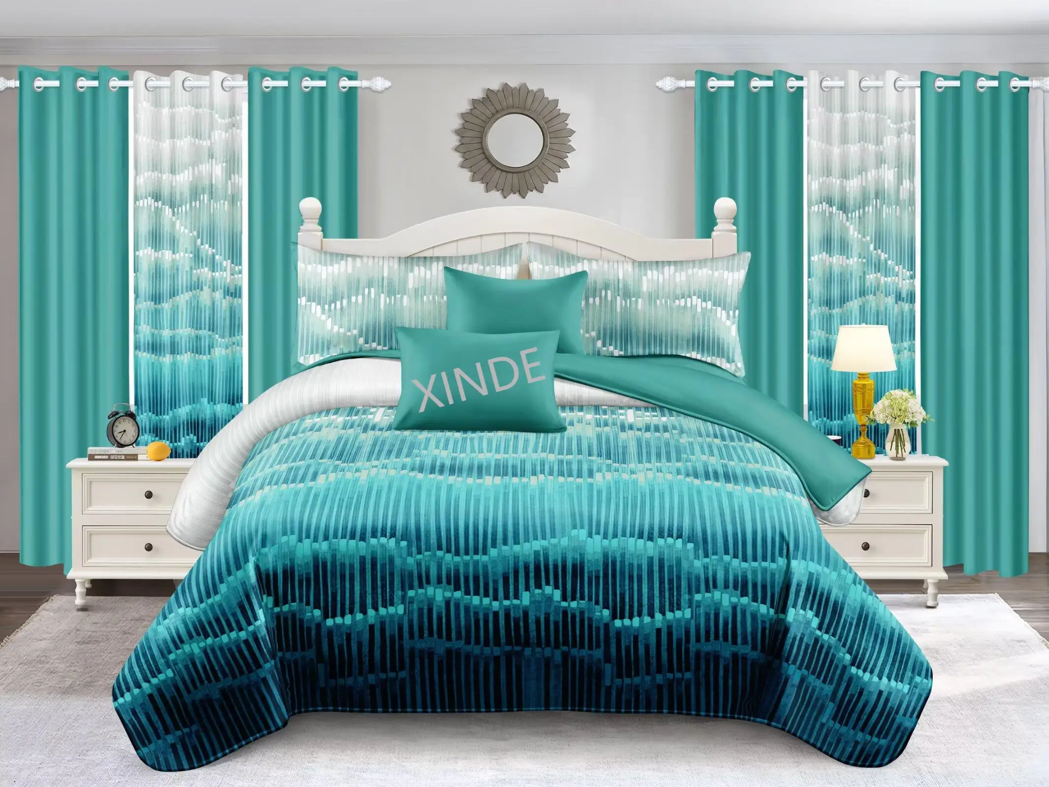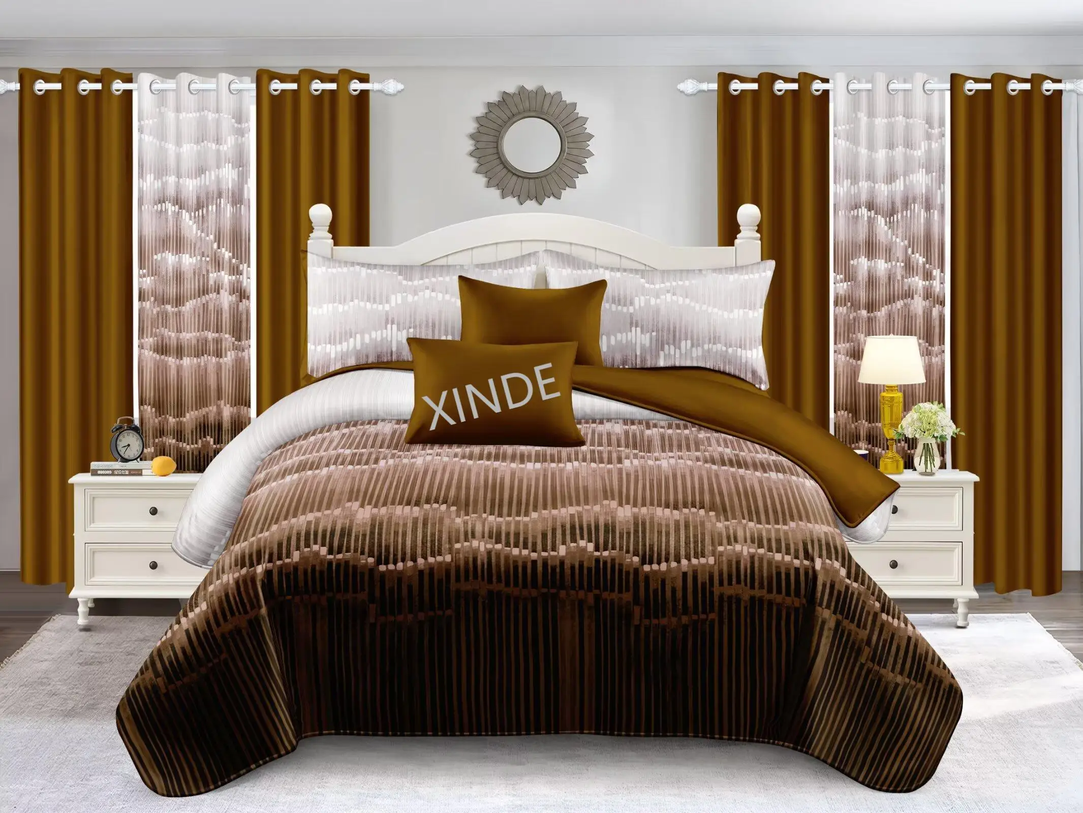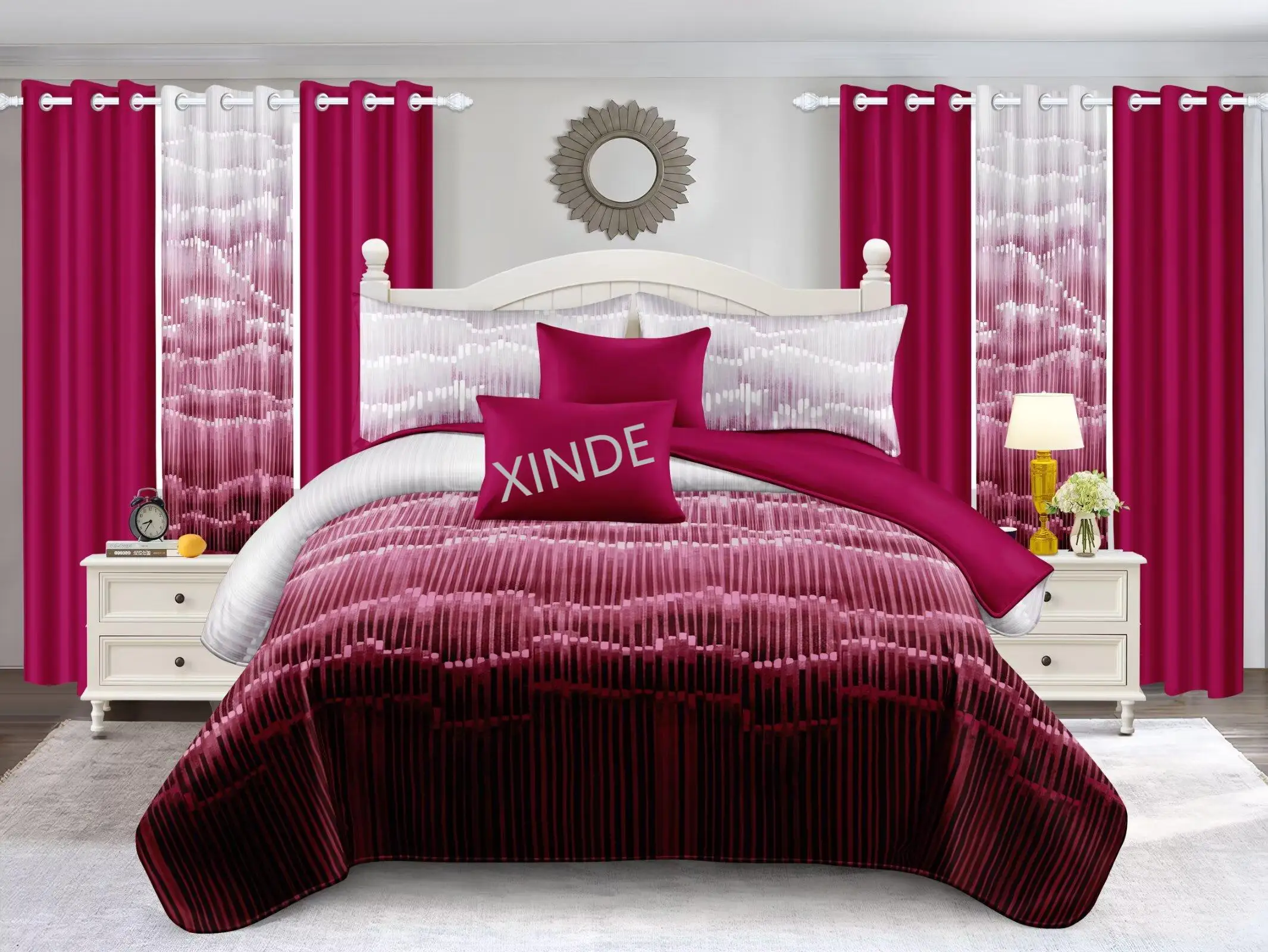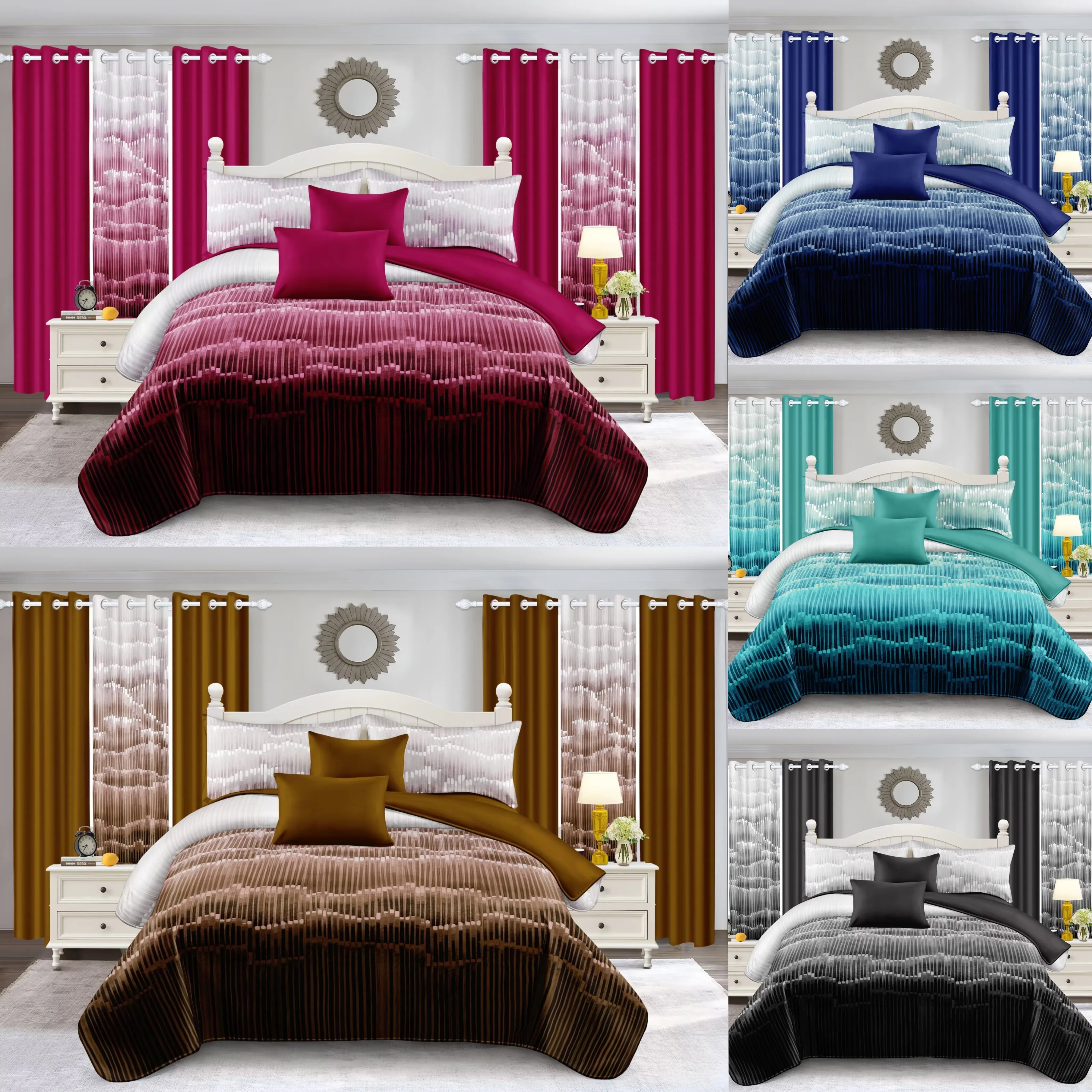 Hot Sell 8PCS New Design King Size Comforter Bedsheet Set With Pillowcases and Curtains